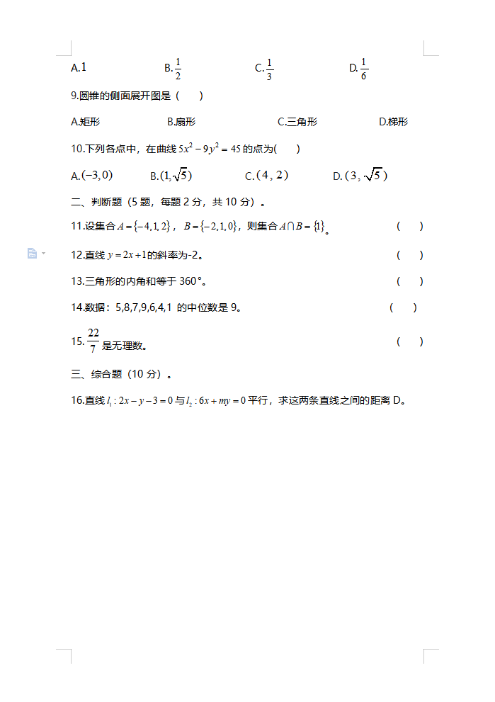 1.本考试形式为笔试(闭卷)考试,与语文及综合素质合卷,考试时间共120分钟,数学试卷满分50分,合卷满分300分。