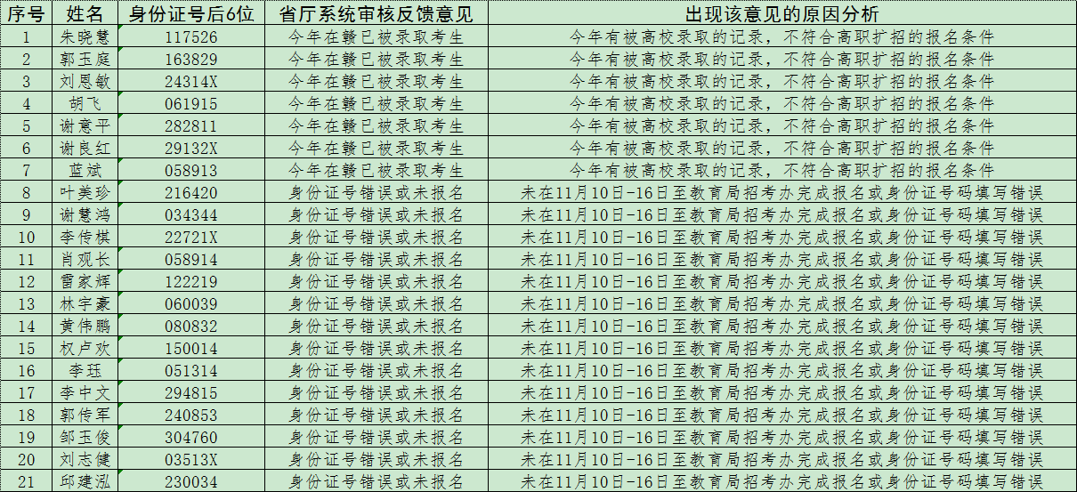 如上述名单人员对省教育厅系统审核反馈结果有疑问可及时与我院招就处联系。联系电话:0797-8069995,19907071607,19907076703。