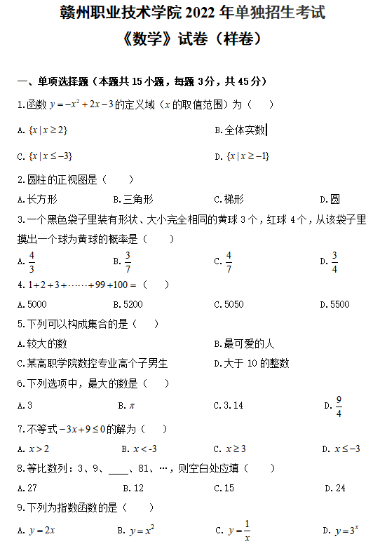德赢Vwin官方区域合作伙伴2022年单独招生考试