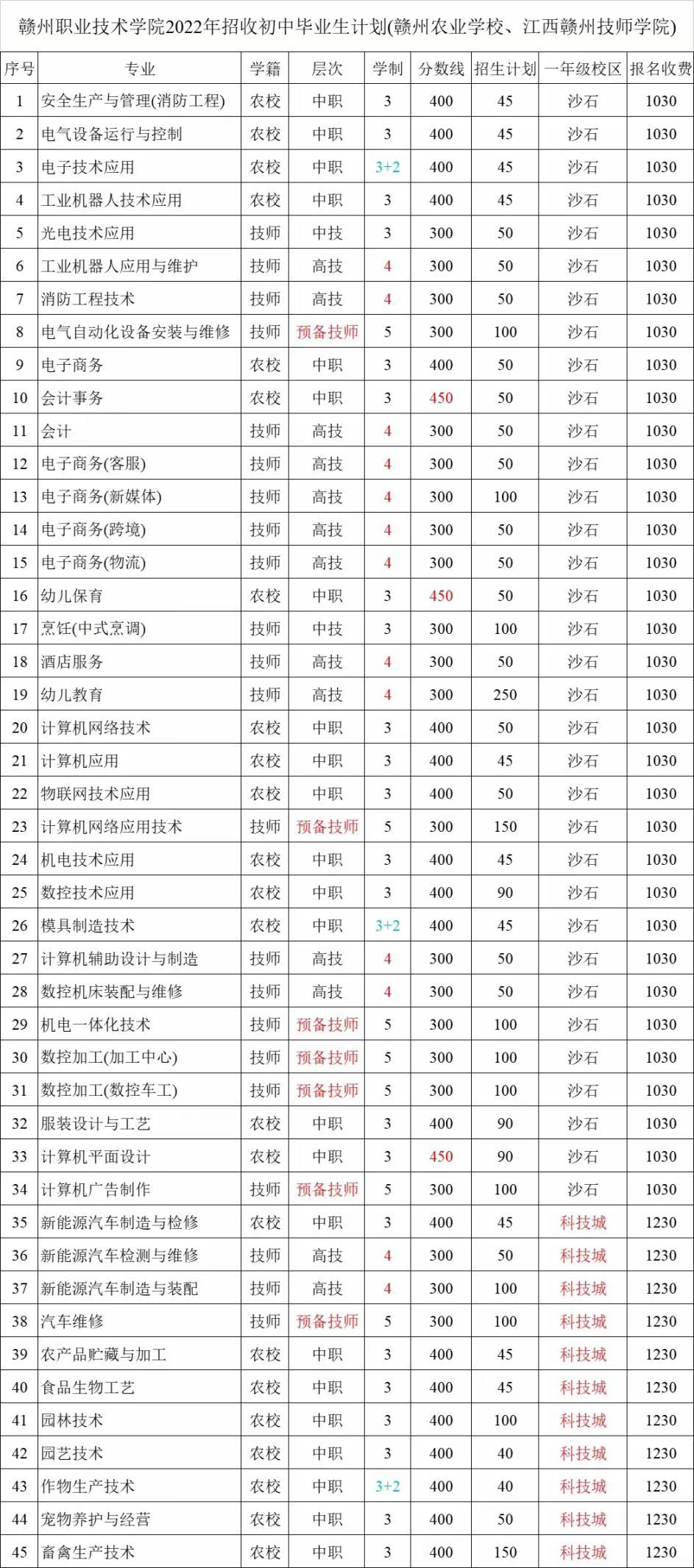 三、赣州农业学校电子技术应用,模具制造技术,作物生产技术这三个“3+2”专业的录取工作由省教育考试院统一组织,目前该工作尚未开展,请有意向报读这三个专业的同学及时关注江西省教育考试院的相关信息,志愿填报时间为8月上旬(https://mp.weixin.qq.com/s/Tf8CXgeJwAQiXu20vxOqgw)。现学校对这三个专业停止报名缴费,已报名缴费的同学也不一定可被录取,请已报名缴费这三个专业的同学注意根据自己的分数与意愿做好专业选择或调整,如无法录取,只能做退费或专业调整处理。