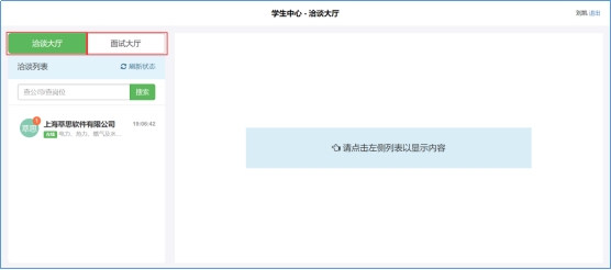 点击“视频面试大厅”可以进入视频面试大厅,可以和单位洽谈或者面试,如图: