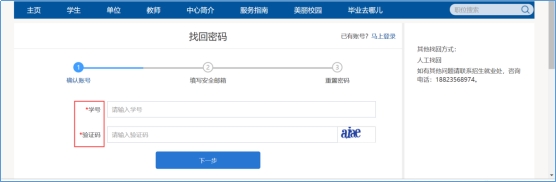 打开注册详情页面,按照注册须知提醒进行填写,输入学号、姓名、验证码,点击下一步,完成注册第一步,如下图: