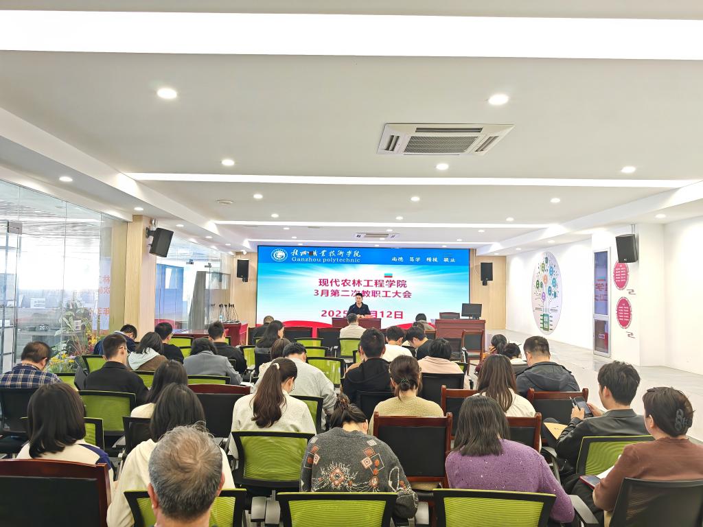 3月12日,现代农林工程学院召开全体教职工大会,学院党总支书记巫健,学院党总支副书记、副院长张红宇及全体教职工参加会议。会议就全员育人格局落实在学生暖心护航及就业推进工作中做了详细的部署。