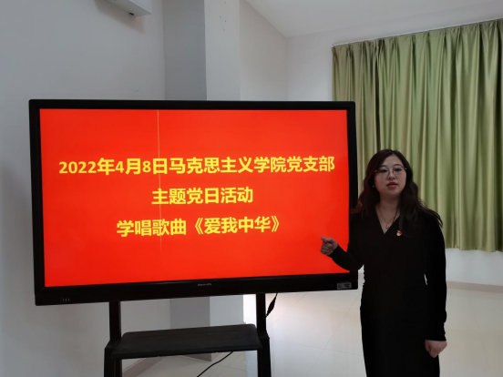 4月8日下午,马克思主义学院党支部全体党员教师,带领青年马克思主义理论学习社的同学,一同开展学唱红色歌曲《爱我中华》主题党日活动。