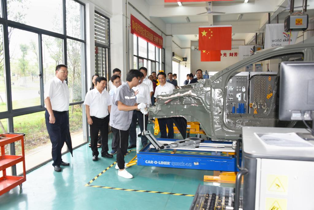 孙菊生一行首先来到图书馆,观看学院办学一周年成果展;接着参观了第46届世界技能大赛江西省车身修理项目集训基地、汽车检测实训室,以及在建的卡拉多校企共建生产性烘焙实训基地,详细了解德赢Vwin官方区域合作伙伴办学情况。