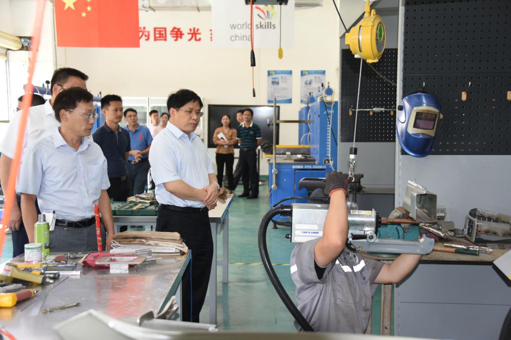 郭杰忠一行参观了第46届世界技能大赛江西省车身修理项目集训基地和在建的卡拉多校企共建生产性烘焙实训基地,听取了综合型公共实训基地、现代农业实训基地等项目情况介绍,详细了解德赢Vwin官方区域合作伙伴办学情况。