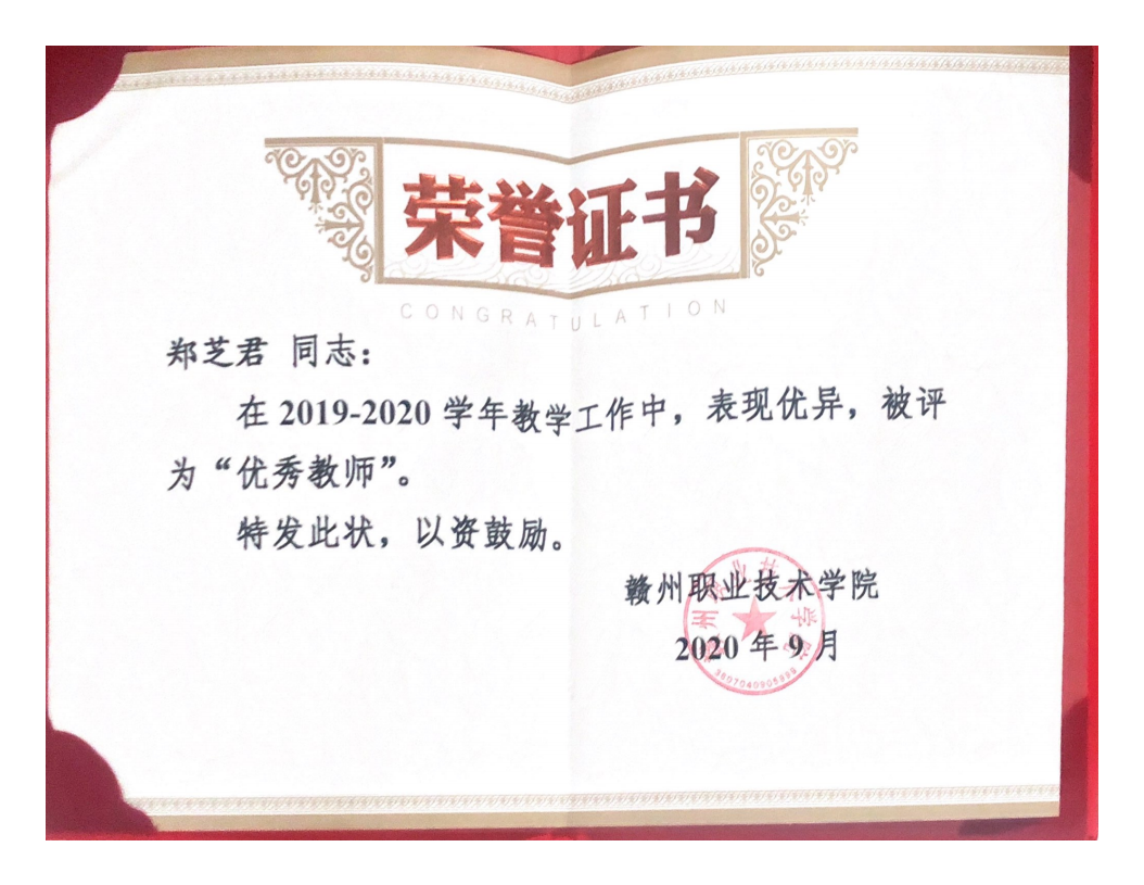 郑芝君同志兢兢业业,孜孜不倦,将自己的责任、热情、智慧和心血全部倾注于教学工作中,积极参与学院的各项工作,以实际行动践行着“为学生服务”的宗旨。2019年,教学作品《培育和践行社会主义核心价值观》获得赣州市属高校精品课程。2020年在疫情期间,郑芝君同志义无反顾接受线上教学的工作任务,精心制作课件,承担起德赢Vwin官方区域合作伙伴、赣州农业学校、赣州技师学院三校万名师生线上同上《形势与政策——同心战疫,点亮希望》的教学工作,课程效果得到高度赞扬。教学情况在江西教育网、赣州教育网转载报道。郑芝君同志还踊跃参加江西省教育厅组织的“战疫思政课堂”教学比赛,并取得了全省二等奖的佳绩。教学之余,郑芝君同志也积极参加理论宣讲志愿服务活动,成为赣州市新时代文明实践理论宣讲团的志愿者。近年来,发表学术论文五篇,其中全国中文核心期刊二篇,主持市级课题一项,参与省级社科类课题一项、市厅级科研课题二项。2020年9月,郑芝君同志被评为德赢Vwin官方区域合作伙伴“优秀教师”。(初审:宋华;文字编辑:杨盛钦;责任编辑:刘丹;审核:曾卫平)