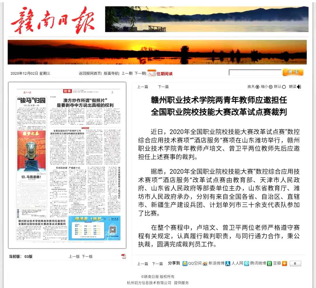 据了解,两位教师此前已多次受邀担任省赛、国赛赛项裁判工作。(曾卫平 谭辉)