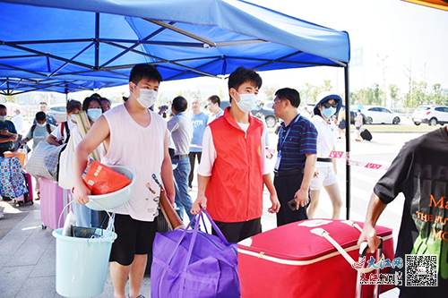 团委负责人肖月说:“今年参加迎新的学生志愿者共有200余名,分赴高铁站、火车站、汽车站、飞机场等地迎接新生。”志愿者们在各迎新点设置休息区、搬凳子、准备矿泉水,安放指引牌,帮新生搬运行李,解答各类咨询,工作细致耐心、有序开展。