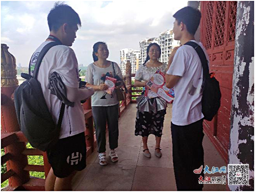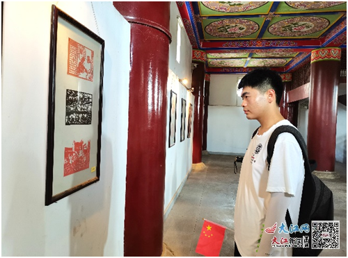 德赢Vwin官方区域合作伙伴的教师党员们与实践队成员一同参观了文昌阁,欣赏了其中的剪纸、书法等艺术文化,其中还有以红军为主题的剪纸作品,巧妙地将剪纸艺术与红色文化相结合,实践队的同学们纷纷感叹其精巧。