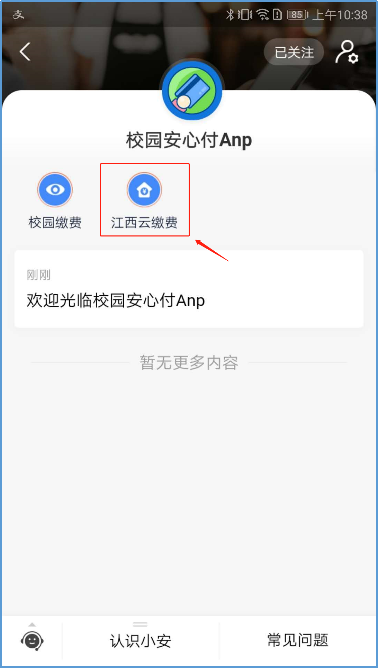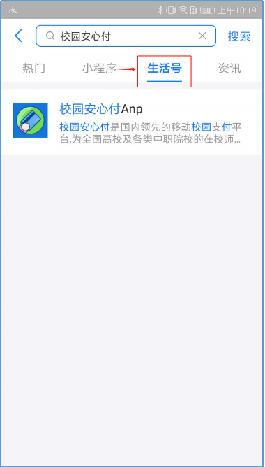 打开手机里的“支付宝”APP,在支付宝搜索栏选择“生活号”输入“校园安心付”,再关注此生活号,进入生活号选择“江西云缴费”。