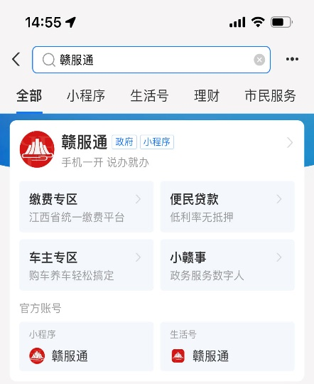 1、支付宝扫描二维码直接进入"学平险"服务,或搜索“赣服通”进入小程序点击“学平险”进入服务。