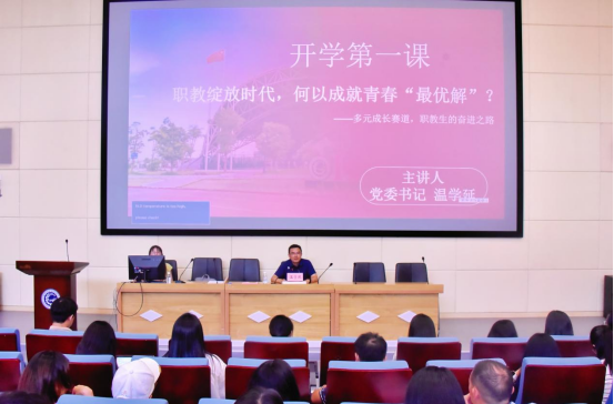 为深入学习贯彻习近平新时代中国特色社会主义思想和党的二十届三中全会精神,落实习近平总书记在全国教育大会上的重要讲话精神,9月24日下午,学校党委书记温学延以“职教绽放时代,何以成就青春‘最优解’?”为主题讲授“开学第一课”,全体思政课教师、学校辅导员代表及100名二级学院学生代表共同参与。