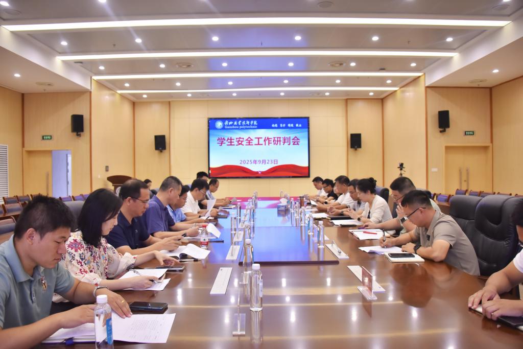 为进一步强化校园安全管理,切实保障学生的身心健康与安全。9月23日上午,学校在行知楼二楼会议室召开2025年秋季学生安全工作研判会,学校党委书记温学延出席会议并讲话,会议由党委委员、副校长林梅主持。校领导谢敏、相关职能部门负责人和各二级学院党总支书记等参加了会议。