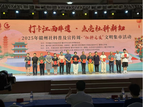 活动中,市社科联高度肯定德赢官网在社科普及方面的贡献,颁发2025年度赣州市社科普及先进集体证书,这既是对学校社科工作的肯定,更是对学校非遗文化推广方式的认可。