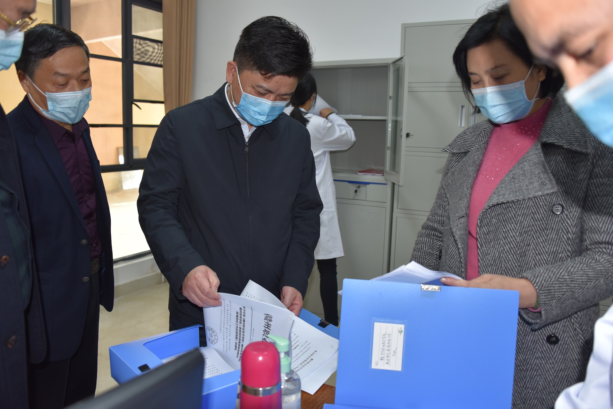 在学院疫情防控物资仓库,王成兵强调,充分的防疫物资储备是做好疫情防控的基础,学校要根据实际,做好防疫物资的储备工作。