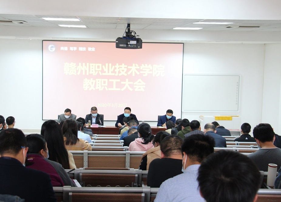 3月20日下午,学院在阳明楼112阶梯教室召开2020年第一次全体教职工大会。党委书记邹志华、院长黄鹏及全体教职工共计71人参加了会议,会议由副院长欧阳荣华主持。