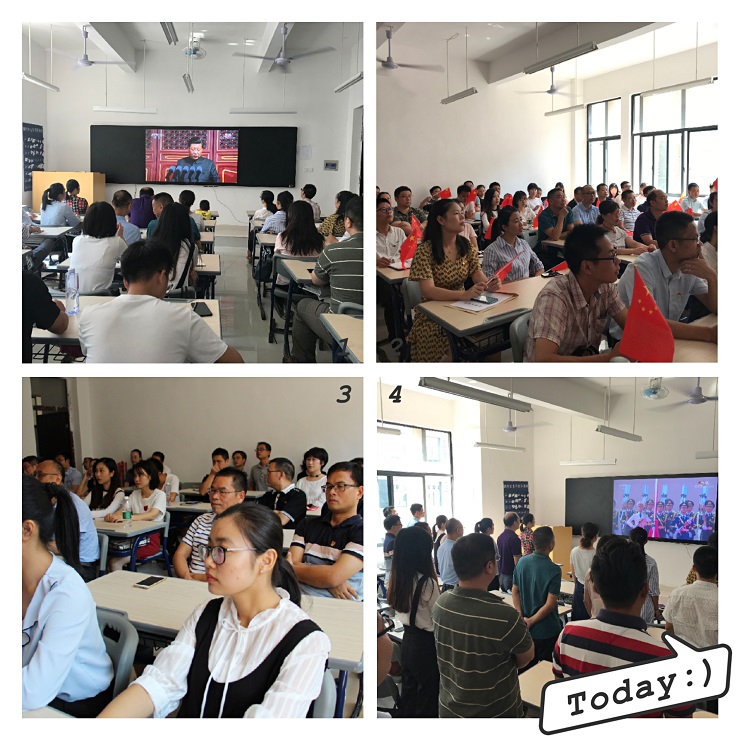 10月1日,庆祝中华人民共和国成立70周年大会在北京天安门广场隆重举行。我院教职工在学院天佑楼221集中观看了庆祝大会、阅兵式和群众游行盛况电视直播。
