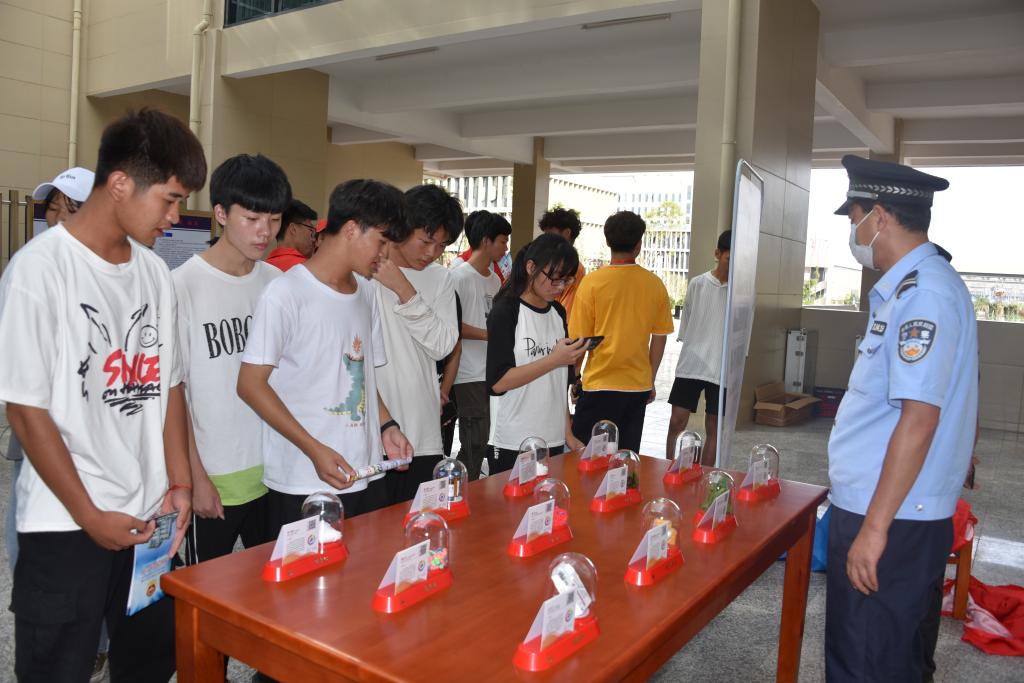本次活动共三项流程,一是“认识毒品种类”,活动现场陈列了各种毒品的模型,派出所民警对毒品种类进行详细地介绍,对毒品的危害进行了深刻的解读,让学生能够更加直观和清楚地认识;二是“认识毒品的危害”,现场展示了吸毒危害的漫画图片和吸毒者的真实照片,图片生动详实,触目惊心,详细介绍了毒品的传播途径,以及毒品给人在身心上造成的严重损害,给家庭、社会带来巨大伤害;最后所有参观的师生在禁毒横幅上签下名字,宣誓日后坚决抵制毒品。(复审人:陈根生)