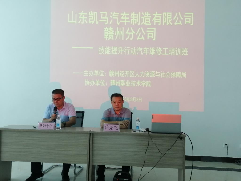 8月3日,山东凯马汽车制造有限公司赣州分公司职业技能提升行动汽车维修工专业培训班举行开班仪式,德赢Vwin官方区域合作伙伴副院长欧阳荣华出席并致辞,山东凯马汽车制造有限公司赣州分公司伦宗飞副总经理,学院继续教育与培训部负责人钟闽、汽车工程系负责人李明全等参加。