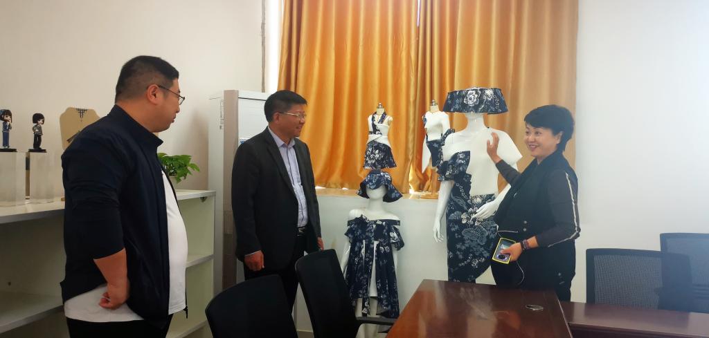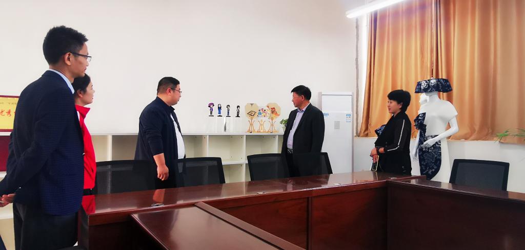 谢敏一行先后来到艺术设计系和汽车工程系实训室,听取了艺术设计系负责人余万霞和汽车工程系负责人李明全对参展展品的制作、材料及设计等方面的详细介绍,并对展品的现场布展、介绍说明等提出了建议。