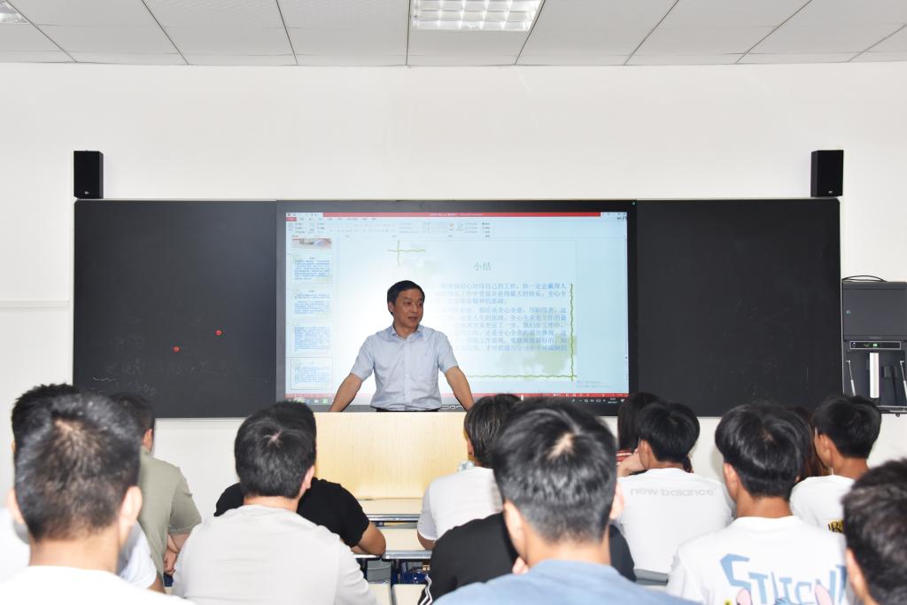 段月红老师讲述的课题是《成功源于敬业》,段月红从成功的意义、成功的秘诀、如何做到敬业并将工作做到极致等方面展开教学,通过生动的案例和视频,让学生从优秀的人物身上看到他们对事业的执着和敬业的工匠精神,加深学生对讲述知识点的理解,并因势利导教导学生“敬业是工匠精神应该具备的品质,只有热爱自己的工作,把工作当成事业来干,才能做到极致,才能取得成功,才能实现自身的价值”。课堂上,黄鹏认真记录,并关注学生的课堂反映及听课情况。课后,黄鹏与学生交流了听课体会,对同学们提出了要努力养成读书、锻炼、思考、自律的好习惯;同时,就推进思政课改革创新、增强思政课程实效等方面提出了明确要求。
