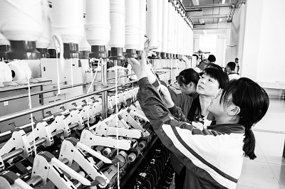 近日,在山东省淄博理工学校纺织、服装实习车间,淄博鲁泰纺织股份有限公司的实习指导教师正在指导学生进行实操练习。目前,该校每年向企业输送200多名职业教育人才,订单招生学员就业率达100%,其中农村学子占95%以上。