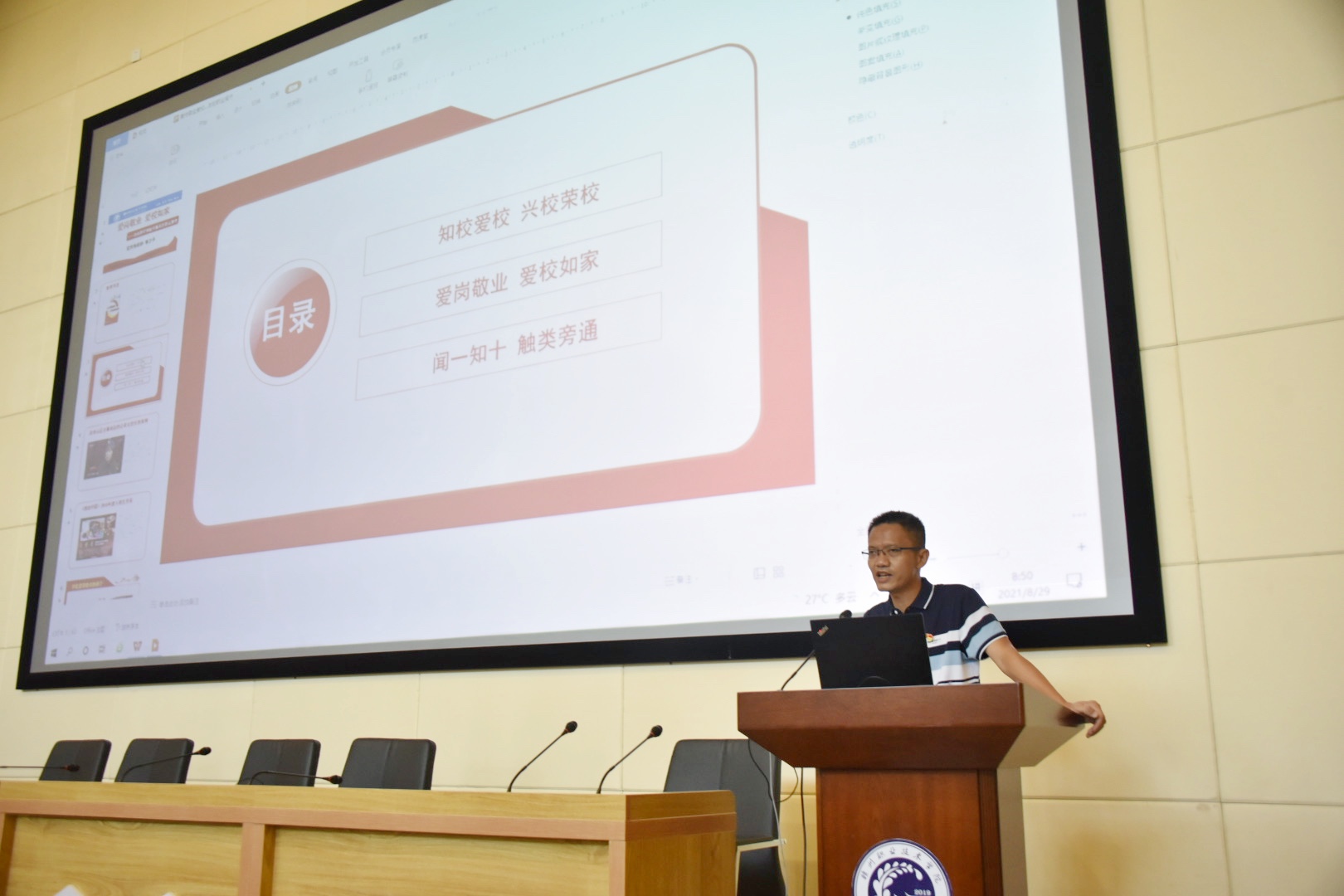 开班仪式伊始,宣传统战部负责人曾卫平为大家播放了精彩的学院宣传片,使全体新入职教师了解学校是如何服务于当地经济发展的。之后,曾卫平围绕三个方面给大家带来了“爱岗敬业 爱校如家——浅谈新时期教师的基本职业操守”的精彩授课。