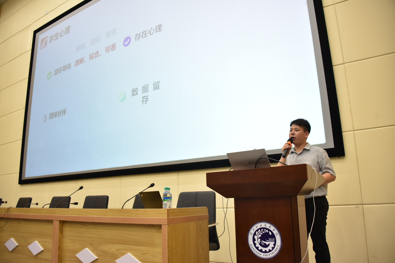 黄晖教授用四个引路人引入主题,教会全体教师要使学生锤炼品格、学习知识、创新思维、奉献祖国。他主要从筑梦、逐梦、圆梦、造梦、引路五个方面,带领大家深入认识辅导员职业,与大家分享17年的辅导员心路历程,帮助大家全面了解“十个一”工作法,全面探索思维工作模式,一起埋下真善美的种子。
