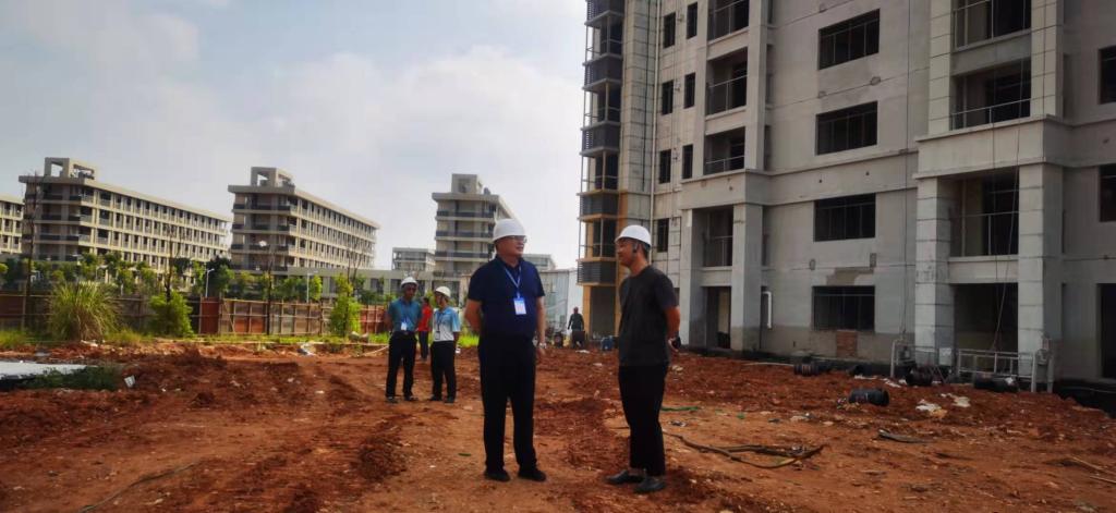 在教师周转房建设工地,邹志华现场听取了项目管理部汇报的工程进展情况,并就下一步周转房建设工作提出具体要求。他指出,因为学院工作需要,原本用来教师休息的值班房住上了学生,要在确保建筑安全和质量的前提下,加快推进后续工程进展,争取让教职工早日住进新居。