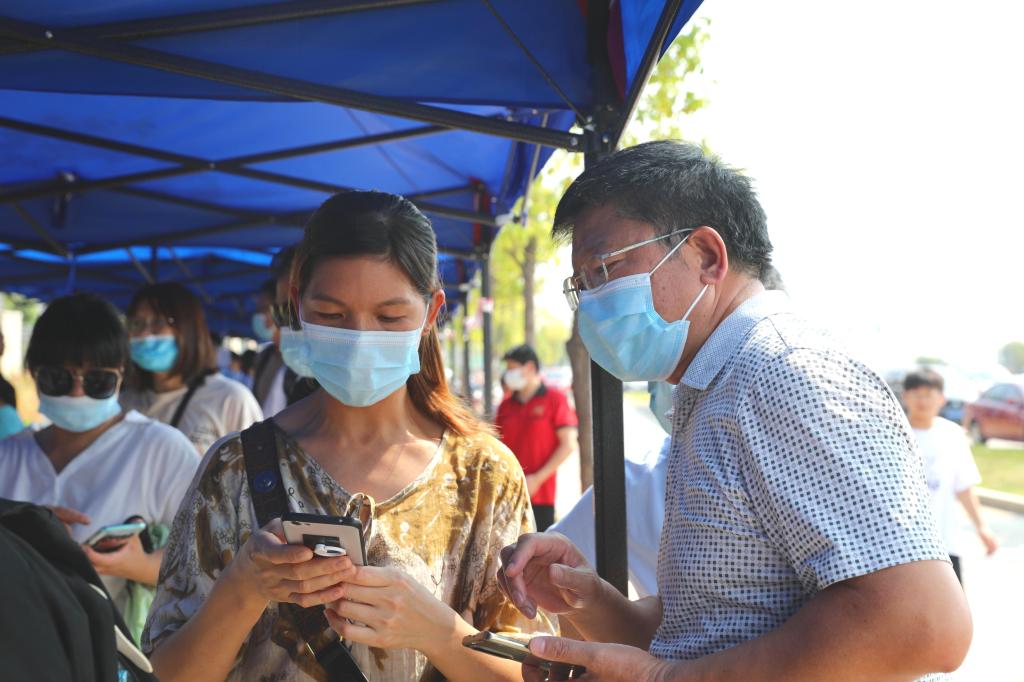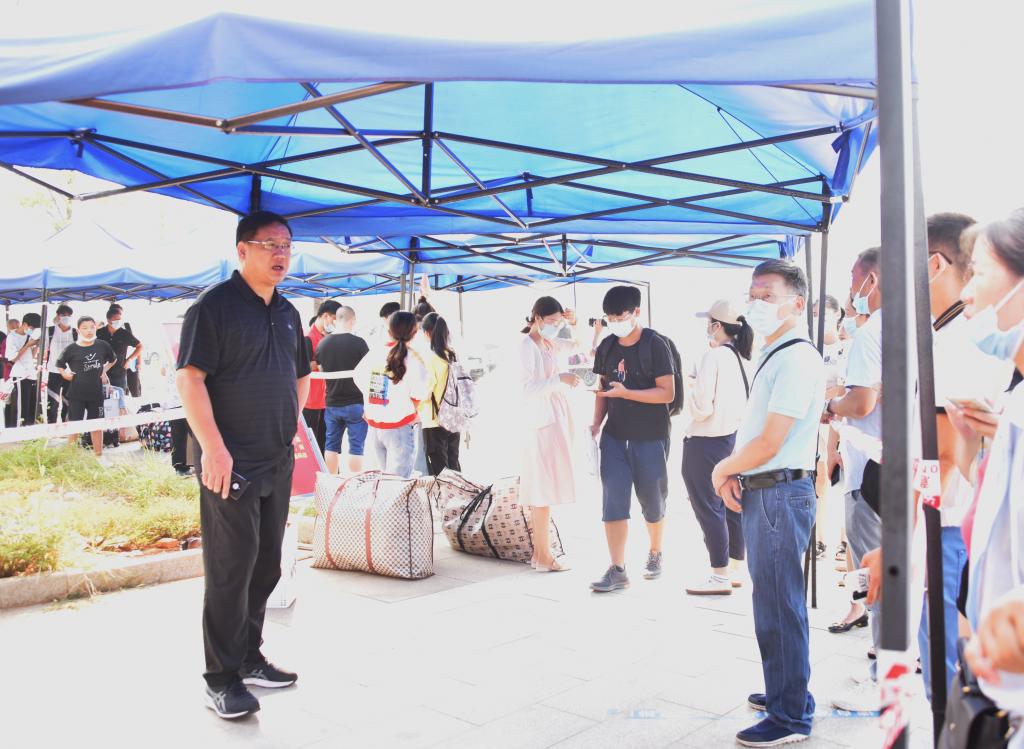 邹志华在宣传统战部、学生工作处、纪委监督检查室、保卫处、继续教育与培训部等部门负责同志陪同下,来到校门口测温点、报到缴费大厅等地,查看新生报到通道设置、疫情防控措施落实,了解新生报到注册和住宿等方面的情况。
