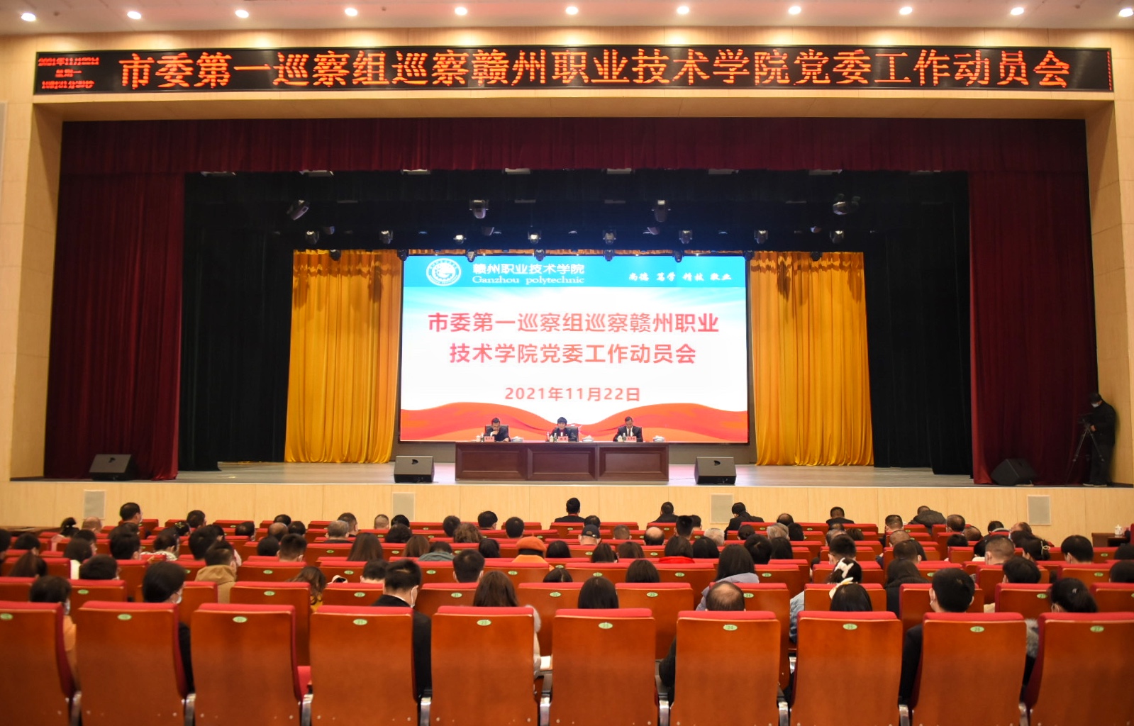 市委第一巡察组其他成员,德赢Vwin官方区域合作伙伴党委(含赣州农校、江西赣州技师学院)领导班子成员、三校干部职工、近三年退休的县处级干部或其他班子成员、离退休党支部书记等老同志代表和学生代表三百余人参加了会议。