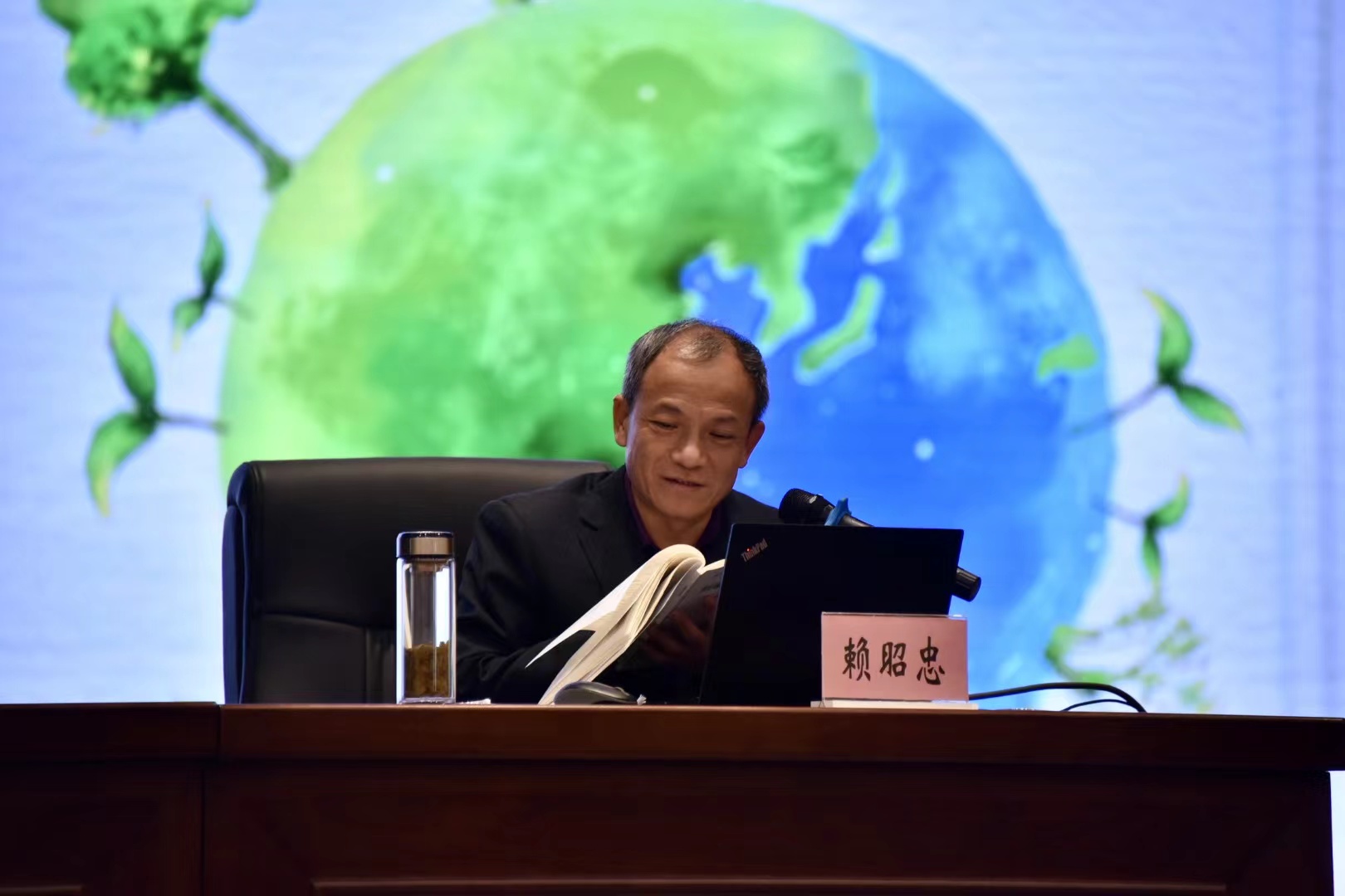 专题讲座上,赖昭忠通过列举大量数据和实例让学生认识到当今全球生态环境面临的严重问题和全球环境治理的紧迫性和必要性,并从“现实之困、中国方案、中国担当”等三个方面讲授了如何共同构建人与自然生命共同体。