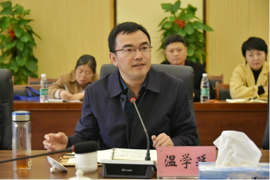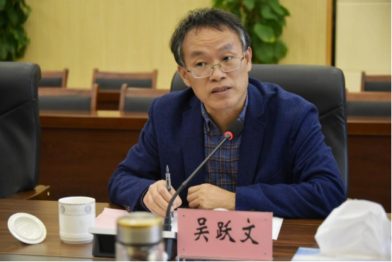 温学延代表学院对吴跃文一行的到来表示热烈的欢迎,黄鹏介绍了学院基本情况,各相关职能部门介绍了学院部门发展具体情况。