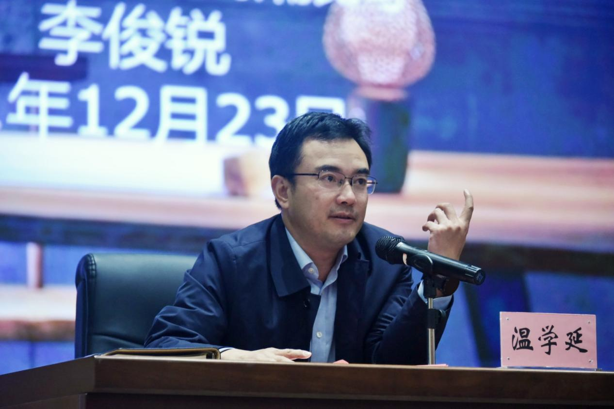 12月23日下午,学院邀请到赣州市文化广电新闻出版旅游局党组书记、局长李俊锐同志来校开展“王阳明心学”专题讲座暨赣州文化大讲堂第六期讲座。讲座由党委书记温学延主持,院长黄鹏,三校在家领导班子成员,教职工和学生代表共计800余人参加了讲座。