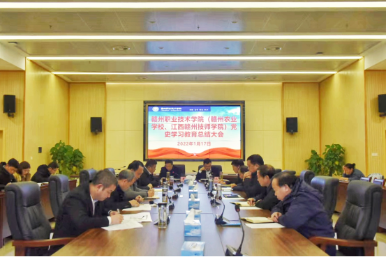 1月17日下午,学院在行知楼二楼会议室召开党史学习教育总结大会,党委书记温学延出席会议并讲话,院长黄鹏通报德赢Vwin官方区域合作伙伴(赣州农业学校、江西赣州技师学院)党史学习教育开展情况,三校领导班子成员参加会议,会议由分管领导叶晓明主持。