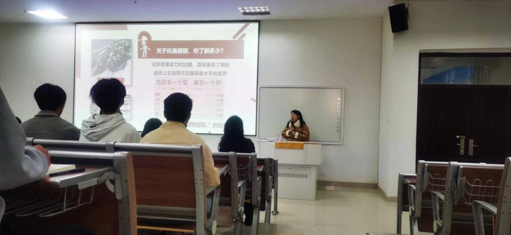 该次课堂讲授的内容是“社会主义改造理论”。郑芝君老师结合热门电影《长津湖》,鞭辟入里地阐述了抗美援朝的意义,同时引出新中国成立后工业化的必要性。课堂上,学生积极参与,课堂气氛较好。