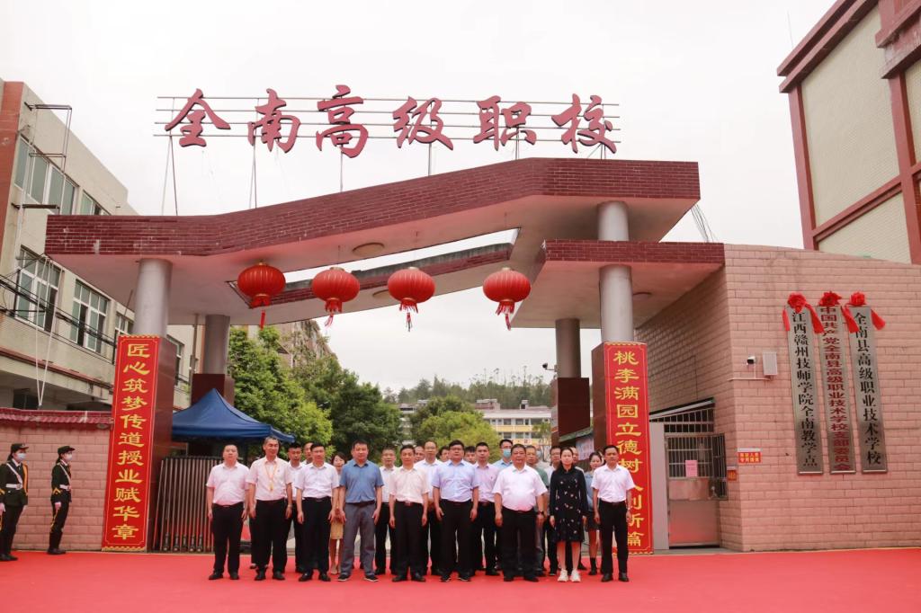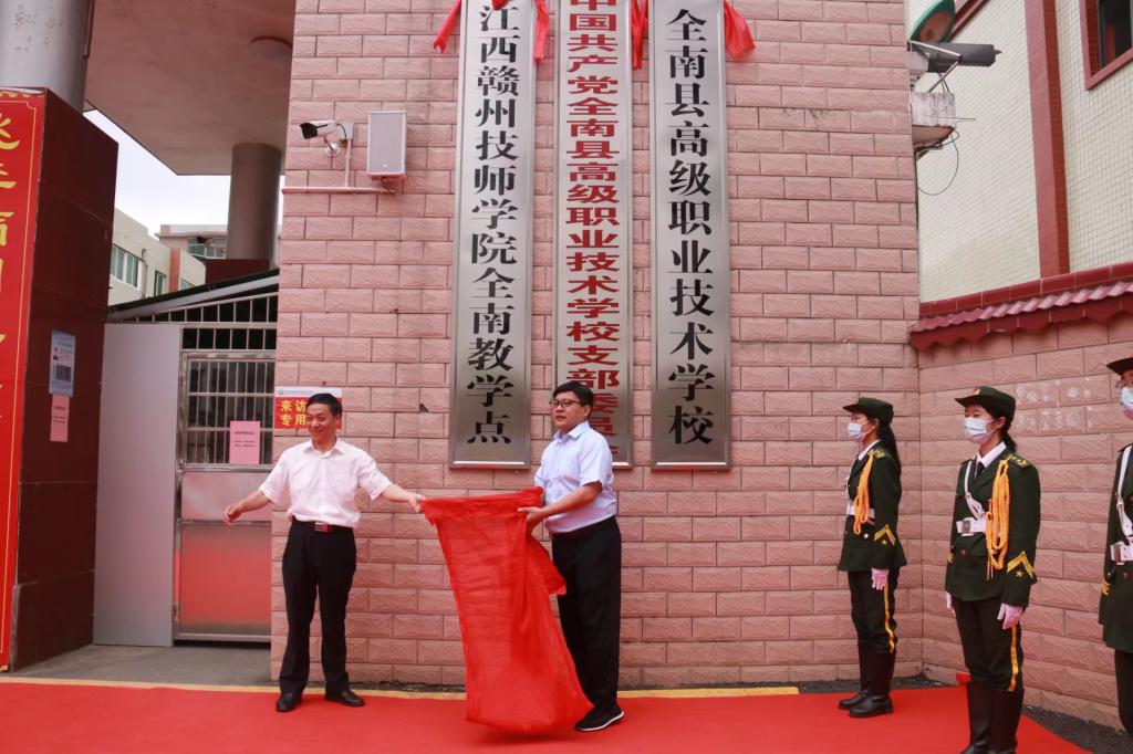 4月29日上午,在全南县高级职业技术学校大门口举行了江西赣州技师学院全南教学点揭牌仪式,德赢Vwin官方区域合作伙伴院长、江西赣州技师学院党委书记黄鹏和全南县宣传部部长黎庆美共同揭牌。