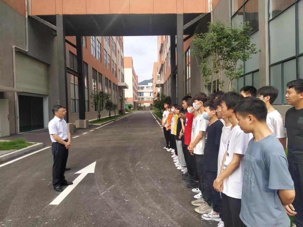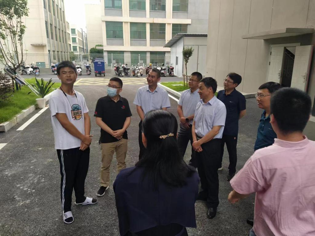揭牌仪式前,黄鹏一行深入到全南县络鑫科技有限公司实地看望在公司实习的学生,与学生代表亲切交谈,了解他们的生活、工作情况,鼓励他们爱岗敬业,勤学苦练,发挥专业特长为当地经济建设贡献力量。