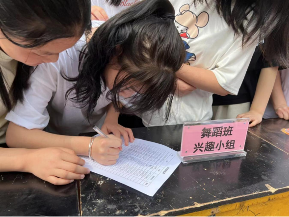 活动现场,学生们踊跃报名,气氛热烈。不一会,舞蹈班兴趣小组、儿歌表演与弹唱、沙盘模拟经营等项目报名人数就已突破30人。