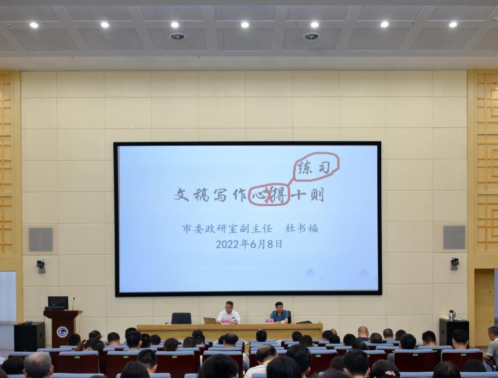 杜书福从“文稿并不神秘、文稿也是有段位的、论文稿写作者的自我定位”等十个方面讲述了自身文稿写作经验,并通过生动活泼、通俗易懂的案例及比喻,从多方面、多角度讲述了文稿的写作方法。同时,文稿写作者要善于日常素材积累,积极提升自我修养,磨练文稿写作技巧。最后,他以《中华圣贤经》记载的山湖纪人所作的一副对联与大家共勉。