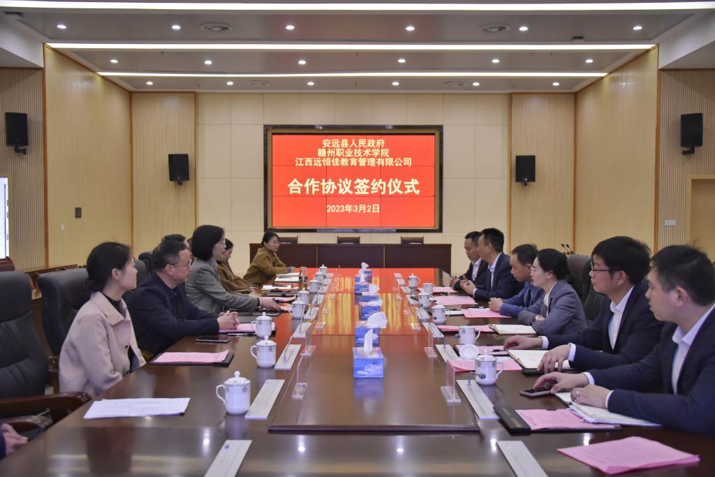 3月2日上午,学院在行知楼二楼会议室与安远县人民政府、江西远恒佳教育管理有限公司签订合作协议。