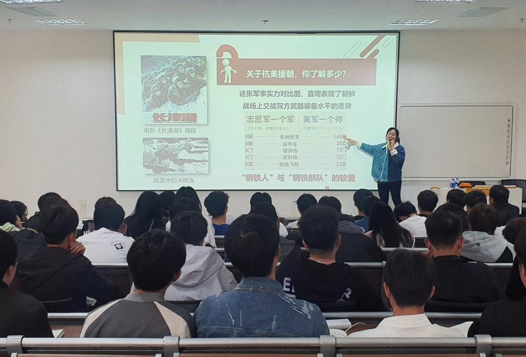 此次“推门听课”随机听取了何棋威老师的《毛泽东思想和中国特色社会主义理论体系概论》课程,她以“抗美援朝”为例向学生讲述了中国进行社会主义工业化的必然性,同时引申出了新民主主义社会中面临的种种问题、进行社会主义改造的必要性,告诫青年学生掌握本领、发愤图强,投身于建设社会主义现代化强国的伟大征程之中。