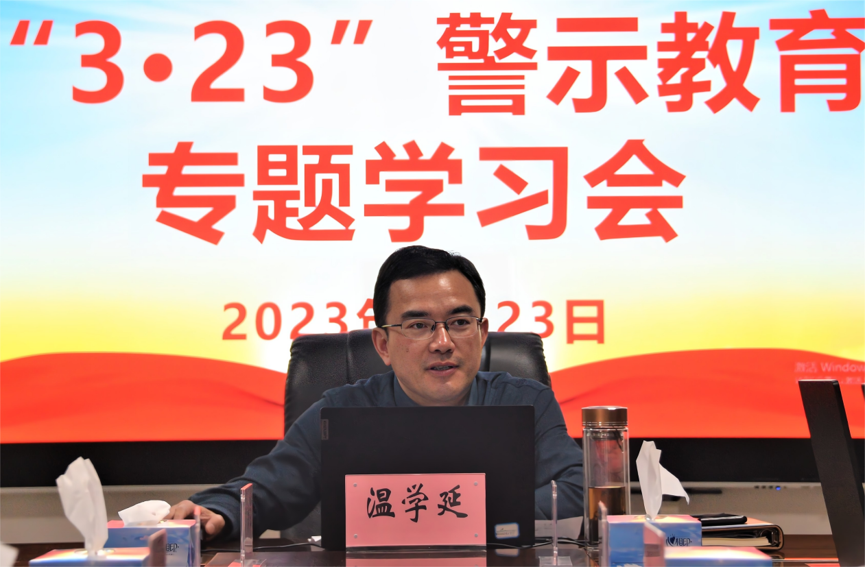 3月23日上午,学院召开“3·23”警示教育专题学习会暨党委理论中心组学习会。党委书记温学延主持会议并讲话,党委副书记汤晓军,党委委员、工会主席熊晓林,党委委员、副院长赖昭忠,党委委员、纪委书记廖凌,党委委员、组织人事处处长温继荣,党委委员、宣传统战部部长曾卫平参加会议。