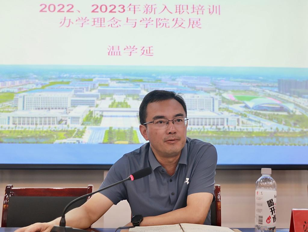 温学延围绕“办学理念与学院发展”,从如何看待职业教育、学院校园文化、如何做好职业教育等三个方面展开,为新入职教师全面介绍了学院的校情、发展历程和目标展望,激发了全体新入职教师爱校、荣校的使命感和归属感。