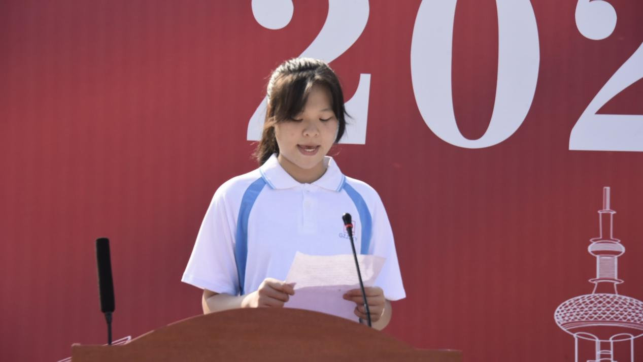 2023级新生代表黄穗萱子和2021级学生代表兰宝珠发言。