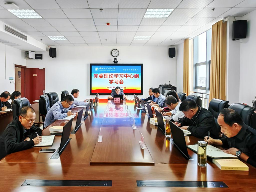 10月13日上午,学院在行知楼六楼会议室召开党委理论学习中心组学习会,学院党委书记温学延主持会议并讲话,党委副书记、院长吴跃文等在家党委班子成员、院领导和相关职能部门负责同志参加会议。
