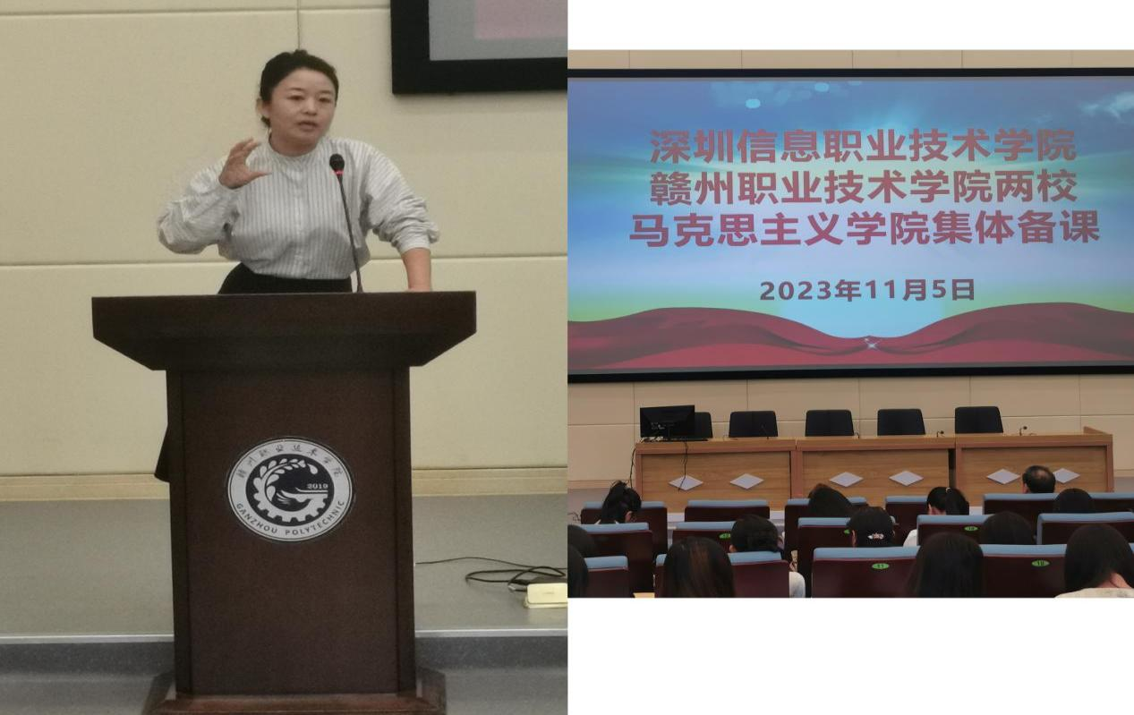 深圳信息职业技术学院马克思主义学院习概论教研室主任、博士刘存玲主持了两校马克思主义学院教师开展集体备课。刘存玲主任还从新思想概论开课情况;新思想实践课程的开展,包括行走中的思政课,情景体验中心的打造;如何进行集体备课和开展教研活动等方面,分享了深圳信息职业技术学院习概论教研室的工作开展情况。