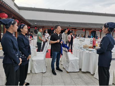 学院现代服务系主任曾海鹏、副主任张诗咏,陈丽嫔、贺娇、刘琳等老师带领92名学生参与了本次世客会志愿服务中餐厅服务的开发设计和世客会龙南老屋树下酒店欢迎晚宴志愿者服务工作。