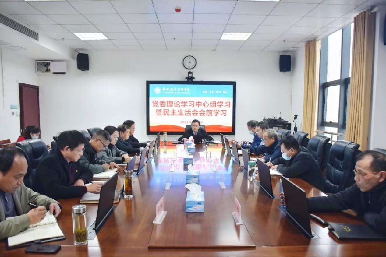 1月8日下午,学院在行知楼六楼会议室召开党委理论学习中心组学习会暨民主生活会会前学习,学院党委书记温学延主持会议并讲话,党委副书记、院长吴跃文等在家党委班子成员、院领导和相关职能部门负责同志参加会议。